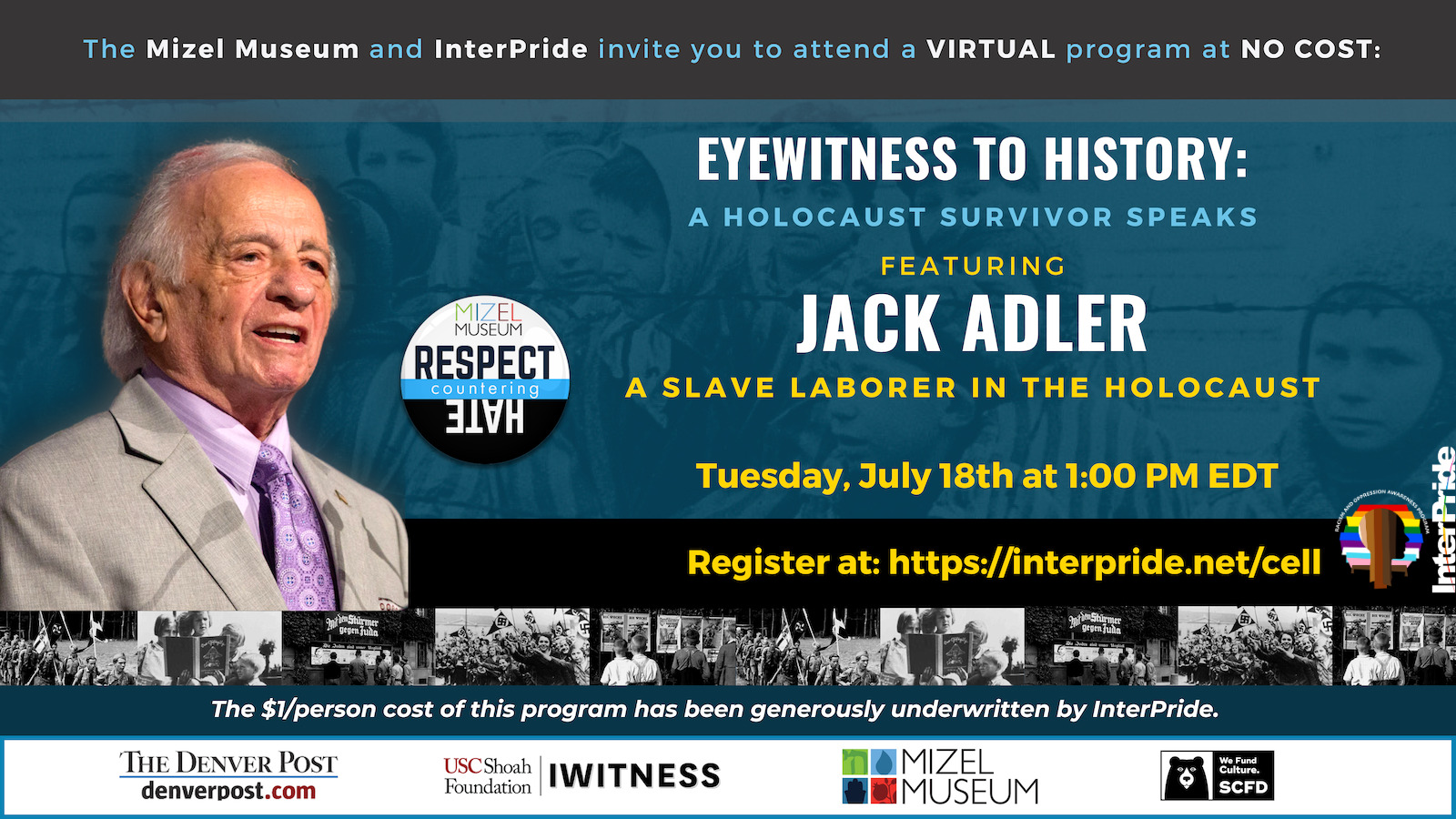 The Mizel Museum and InterPride are proud to bring you virtual Eyewitness to History, which teaches audiences about the devastating effects of racism and bigotry through firsthand testimony of the Holocaust. On July 18, join us for "Jack Adler: A Slave Laborer in the Holocaust."
