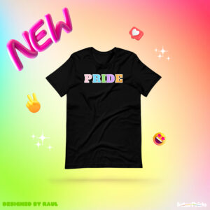 “When I was creating these designs, I wanted to create something a bit different than the usual pride designs out there. I believe that the word PRIDE and phrase LOVE IS LOVE in itself does a great job representing the LGBTQIA+ community and movement. By having this perspective, I was able to play more around with the different tones of the pride rainbow symbol. Even though these designs do not have all the colors of the pride rainbow symbol, they resemble elements of it while showcasing the essence of the LGBTQIA+ community and movement.” – Raul Chaidez